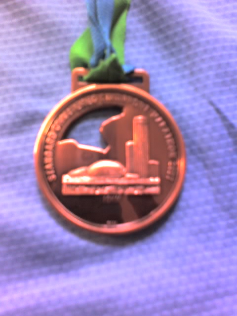 Here are my stuff. You can see the medal, my number and my message (: